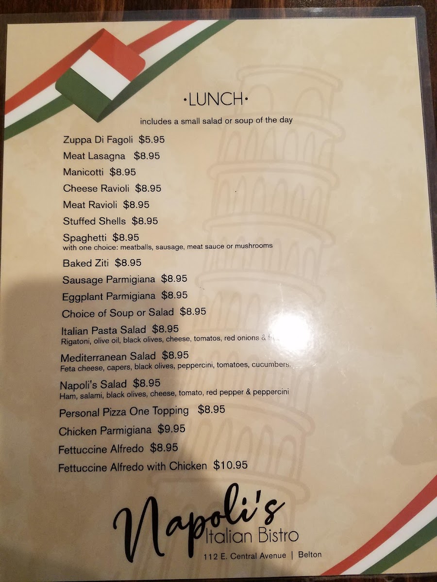 Welcome to Napoli's Italian Bistro, a charming eatery nestled in Belton, TX, where authentic Italian flavors come alive. This delightful bistro offers a sumptuous menu crafted to satisfy every palate. Start with their Eggplant Rollatini, indulgently stuffed with ricotta cheese and served atop spaghetti for just $14.95. For entrées, the Napoli's Chicken & Shrimp shines with tender chicken and succulent shrimp, all enveloped in a luscious wine sauce, while Chicken Carciofi delivers creamy goodness with artichokes over linguine at $16.95.